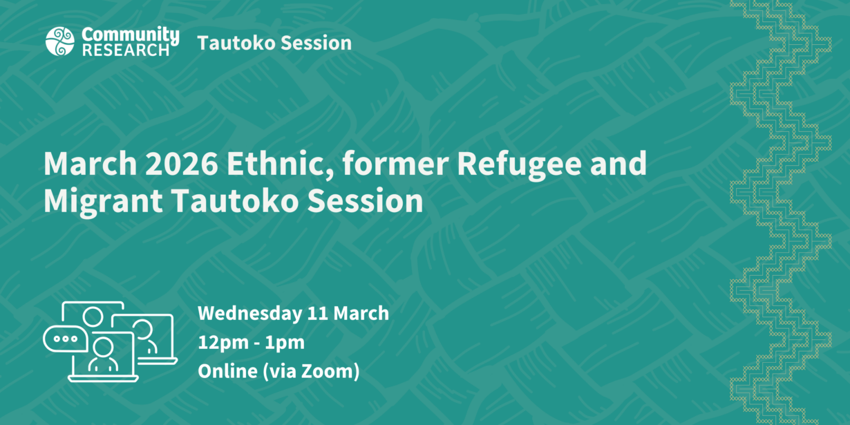 Join us for our first Tautoko session for 2026 and connect with other researchers, former refugees, and migrant peers who are passionate about research with, by and for ethnically diverse communities.